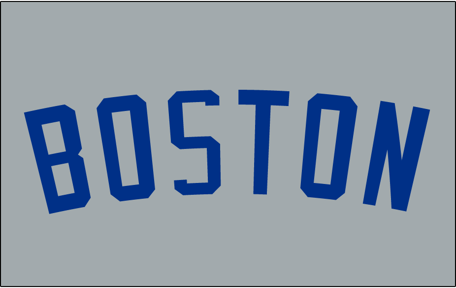 BOSTON arched in blue on grey, worn on the front of the Boston Americans road jerseys in 1901 and again from 1903-07