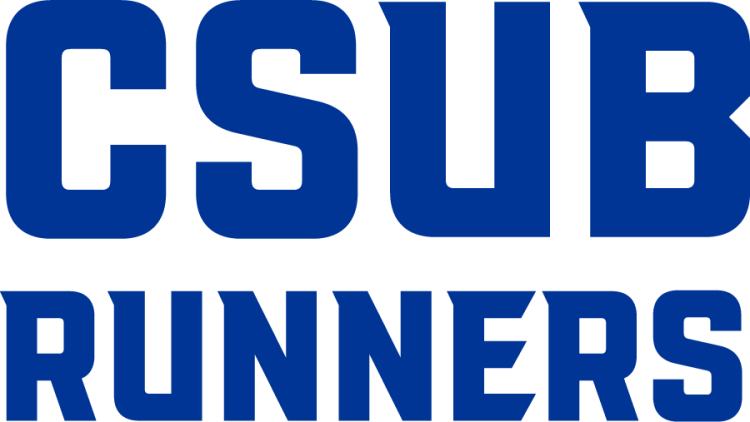Stacked CSUB Runners wordmark (VTF Redzone font) in blue with larger CSUB letters.