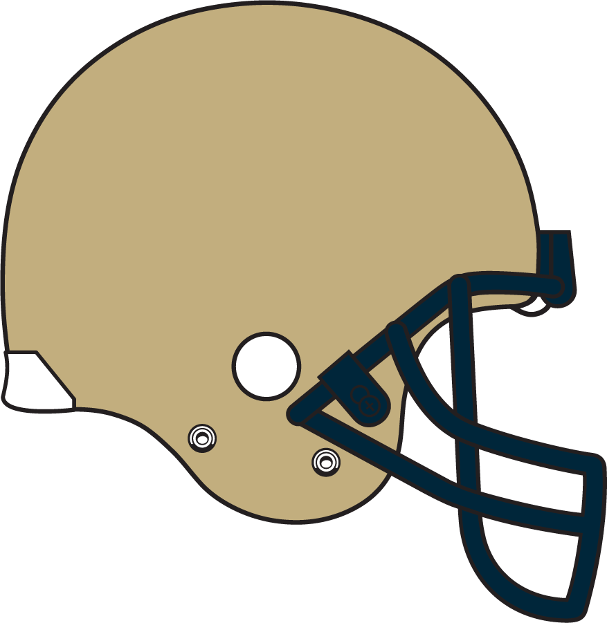 Metallic gold football helmet with no logo, navy facemask, and no stripes. This is the same helmet as 1978-07 except some games in 1984 did not have logos on the helmets.