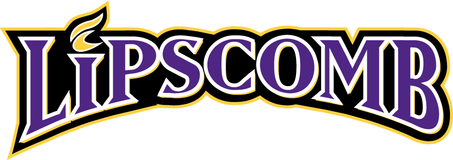 Arched Lipscomb wordmark in purple, black, and gold. A torch flame is featured at the I.